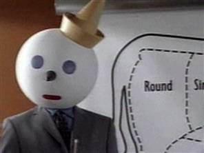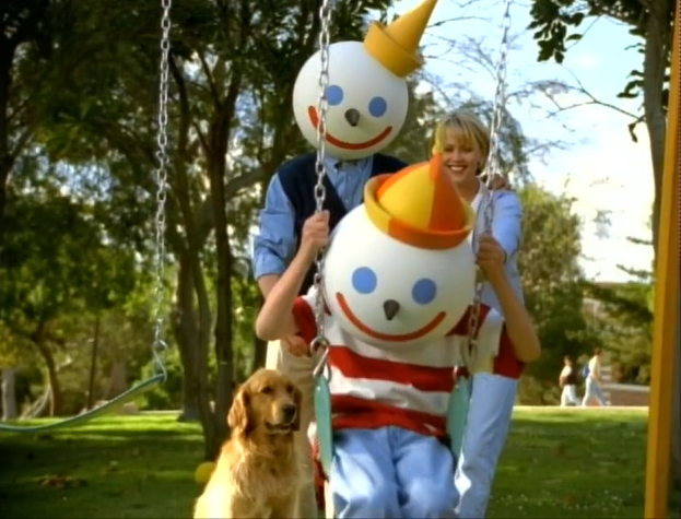 In 1994, the ad agency Chiat/Day was brought onboard to help rebrand the company, which was on the brink of bankruptcy in the wake of the 1992-1993 E. coli outbreak. A campaign spearheaded by creative director Rick Sittig reinvented the chain's former clown mascot Jack as Jack Box, the chain's fictitious founder and CEO. "I thought it would be fun and instead of just making him a clown you order through, to bring him back as the company founder and to treat him as you would treat any other company founder on TV, whether it's Lee Iacocca or Bill Gates," Sittig said in a 1997 interview.[8] Depicted as a snarky, no-nonsense businessman with a large, white ping pong ball-like head, Jack was "reintroduced" in the 1994 commercial Jack's Back, in which he returns to Jack in the Box and blows up a boardroom as revenge for his 1980 explosion.