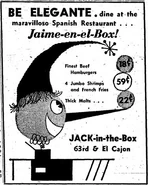 Early newspaper advertisements in 1954 playfully presented the restaurant as a French restaurant one week, and a Spanish restaurant the next.[1]