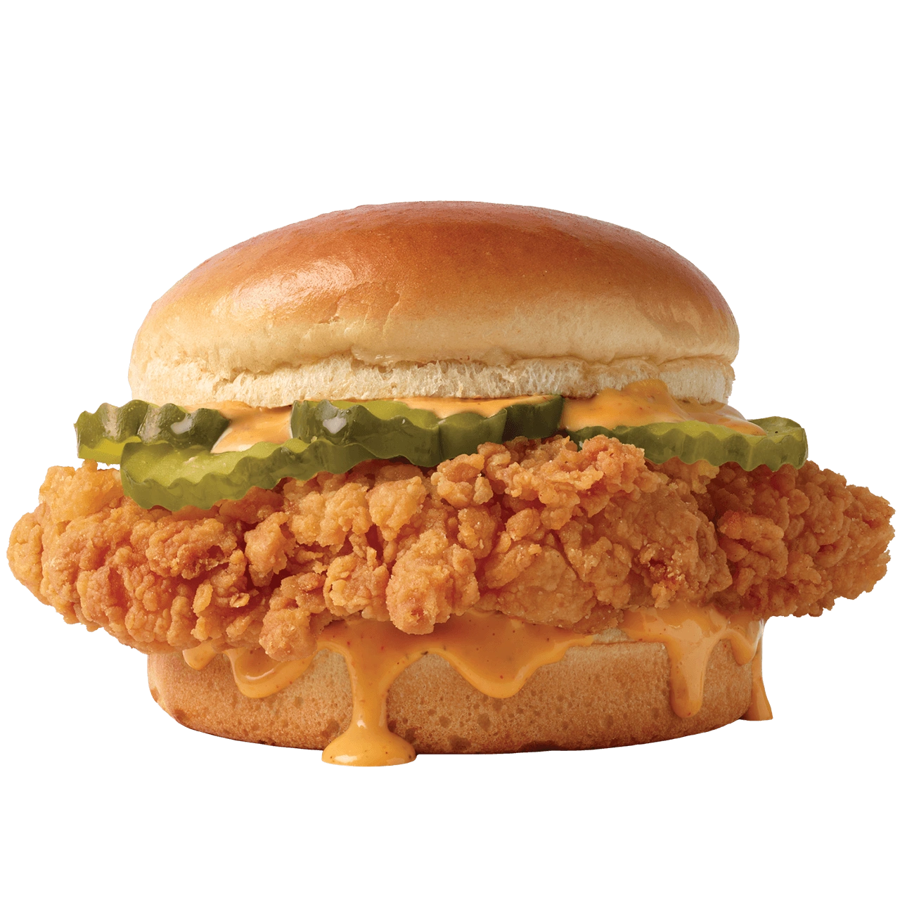 Other chicken sandwiches bow to the Cluck. Our new 100% all white meat chicken fillet is bigger, crispier and better than ever, topped with thick crinkle cut pickles and our signature Mystery Sauce on a toasty brioche bun. It’s so good, it’ll have you doing your best chicken dance.[1]