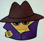 In the comic books, he is depicted as a Caucasian male with a large nose, wearing a purple trenchcoat, black pants, and what appears to be a fedora hat. Some panels appear to imply he is bald under the hat. A bendy toy of Secret Sauce Agent features him with purple skin.